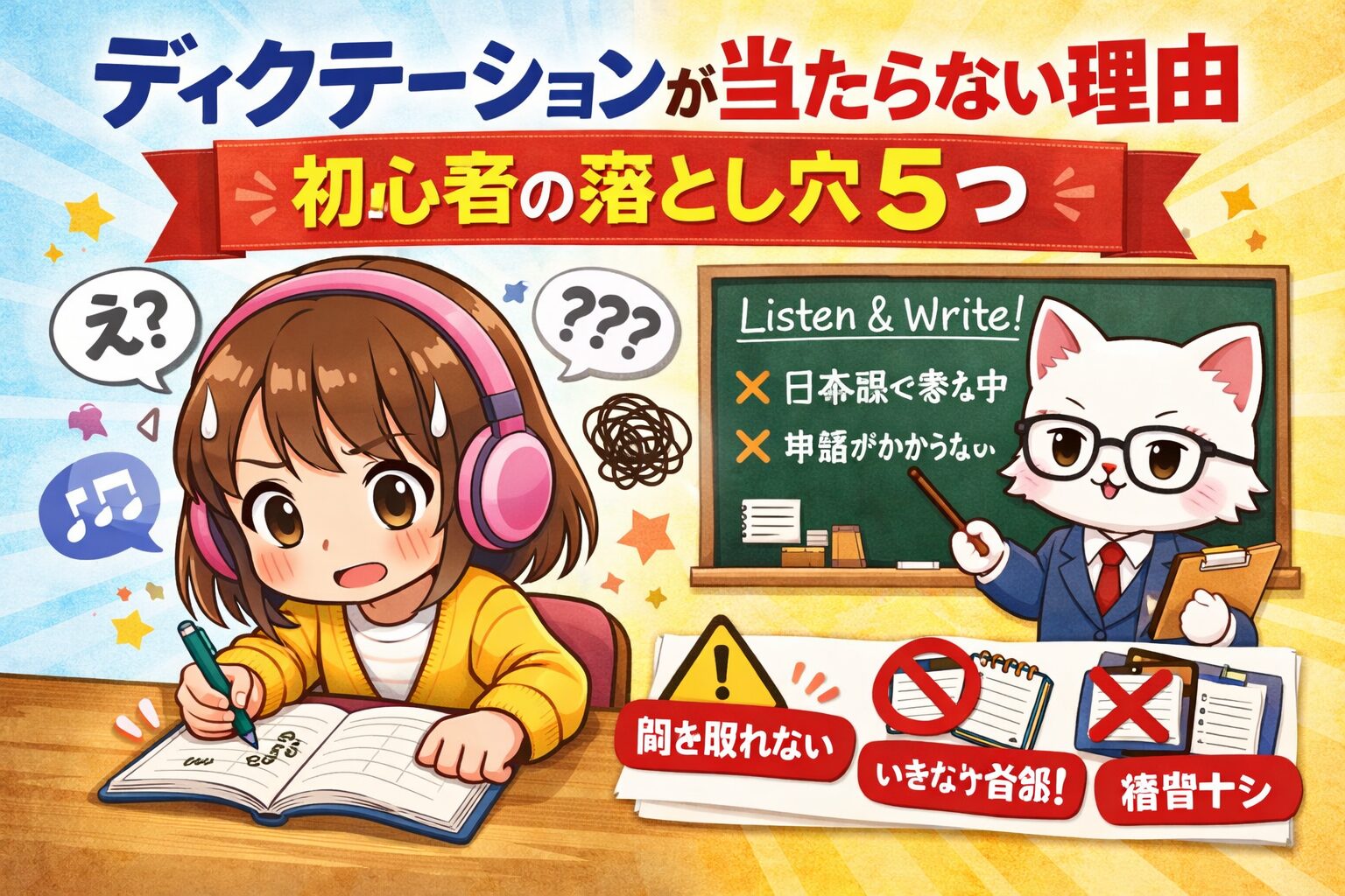 この記事では、ディクテーションが当たらない人が必ずハマる「5つの落とし穴」と、今日から修正できる改善ポイントをわかりやすく解説します。