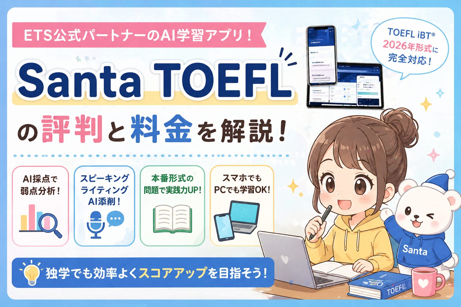 Santa TOEFLの評判と料金を解説|AI学習の効果