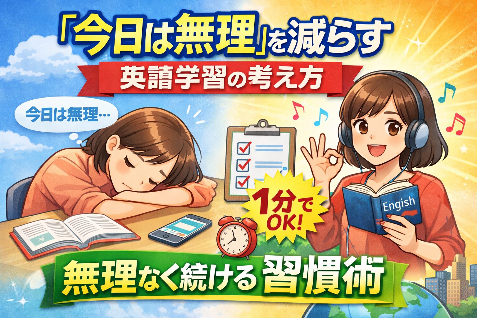 「今日は無理」を自然に減らしていく英語学習の考え方を解説します。